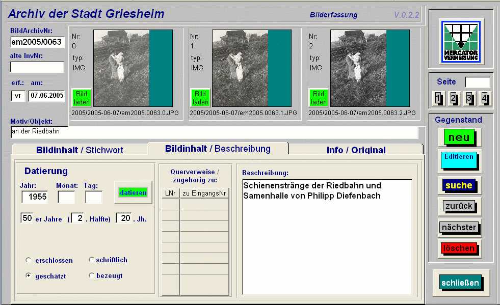 Aus der Inventarisierungssoftware für das Griesheimer Stadtmuseum wurde in der Zwischenzeit das komplexe Museumsprogramm MERCATOR MUSEION. Es orientiert sich an der Systematik des Hessischen Museumsverbands und wird von diesem anerkannt. Die große Schrift und die übersichtliche Ausgestalung erleichtern älteren Personen die Mitarbeit im Museum. - mehr Informationen -